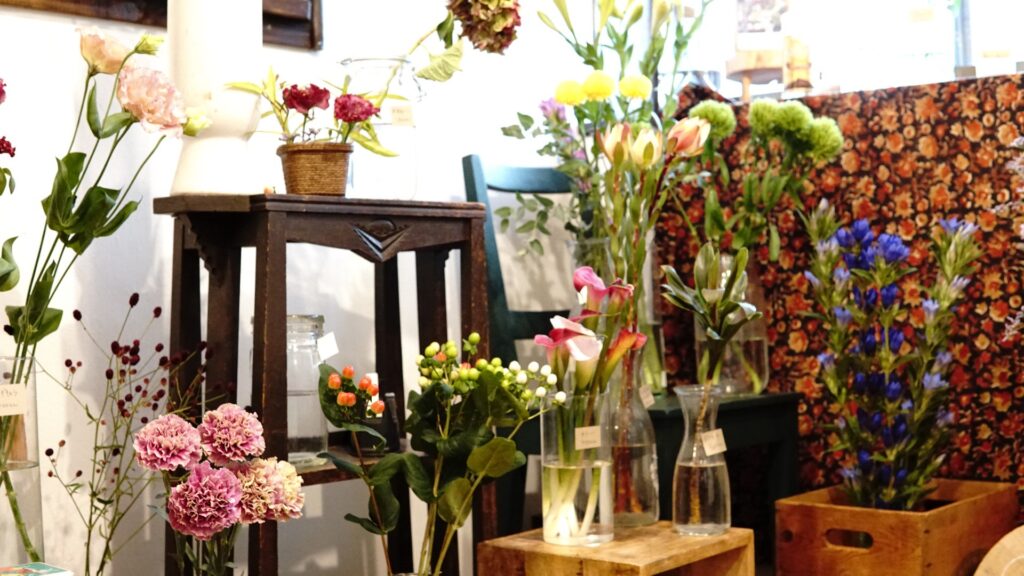花の香り、焼きたての香ばしい匂い、甘いお菓子の香りが、KANKI COFFEEの店内いっぱいに広がります。